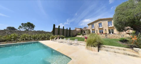 Cuenta con 6 habitaciones dobles con baño, piscina privada y vistas abiertas al paisaje, lo que la convierte en una opción ideal para alquiler de villas en Barcelona para familias o grupos que buscan privacidad y exclusividad.