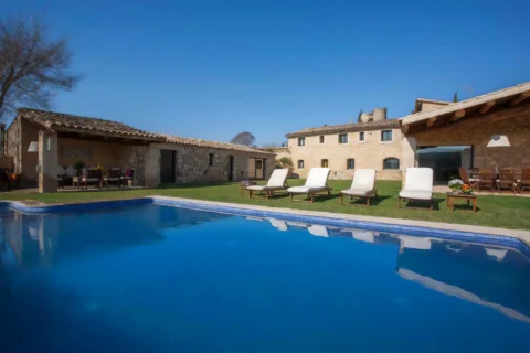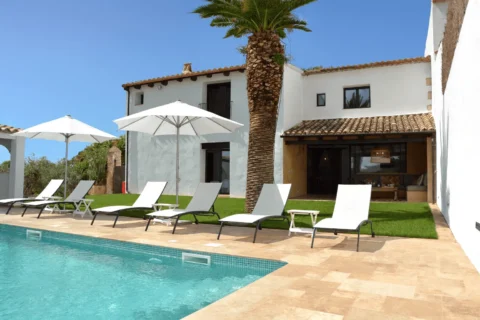 Esta villa de alquiler destaca por su cuidada decoración, que recrea el carácter auténtico de una antigua casa de payés, combinando tradición y comodidad.