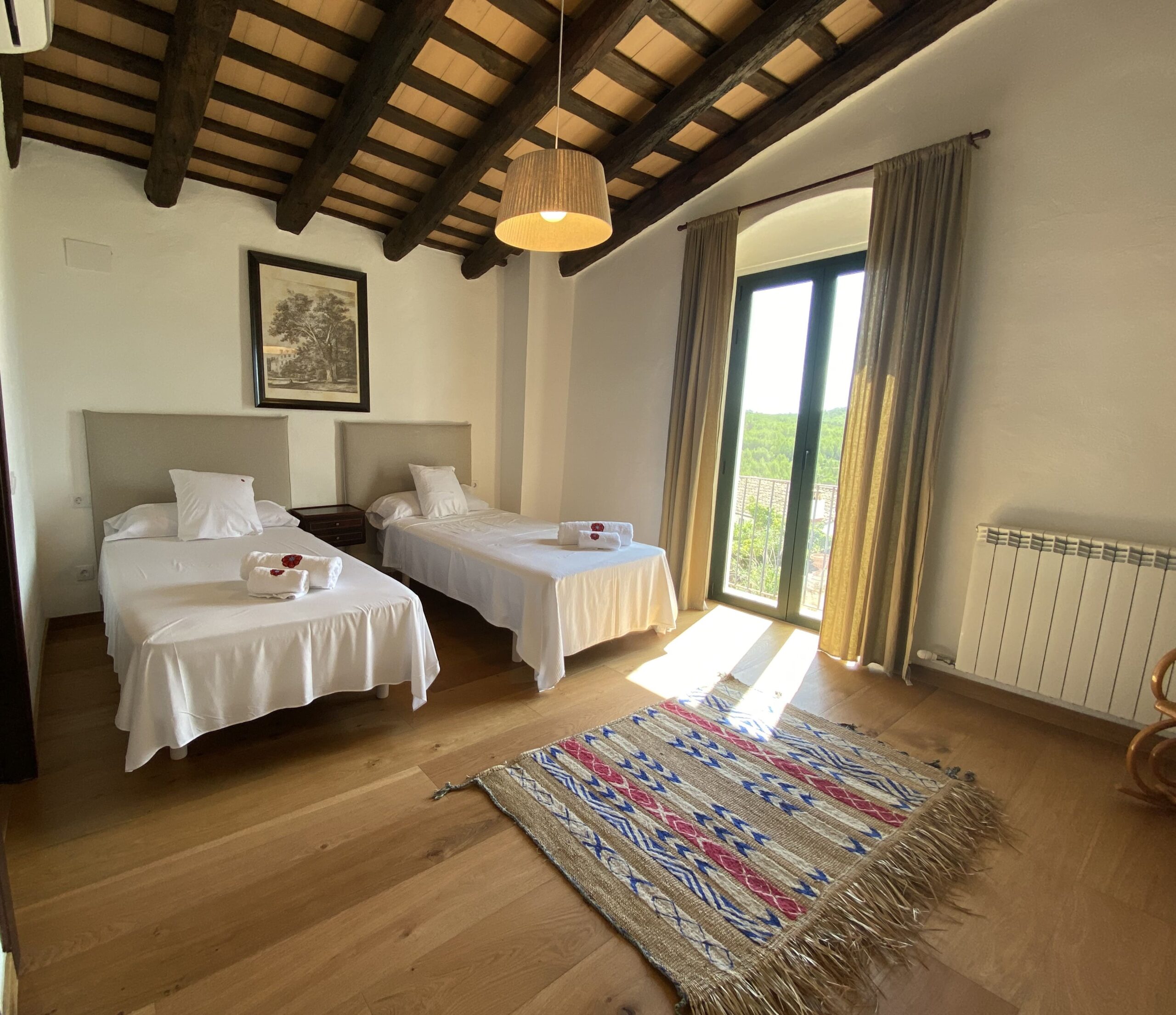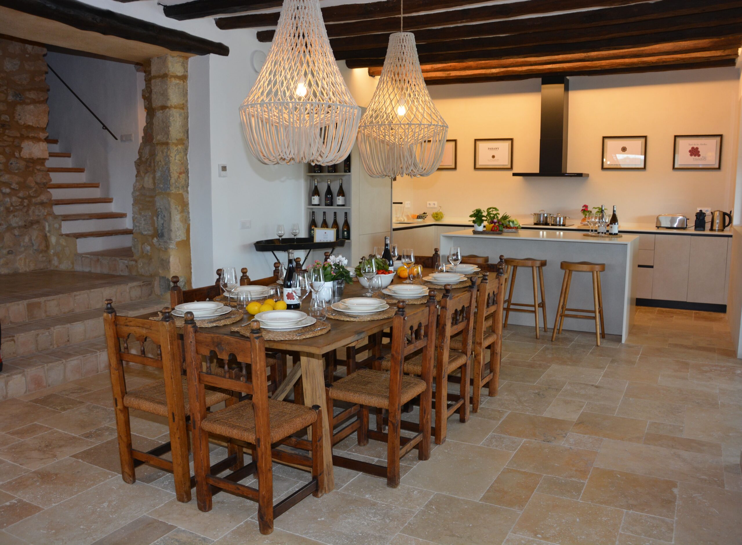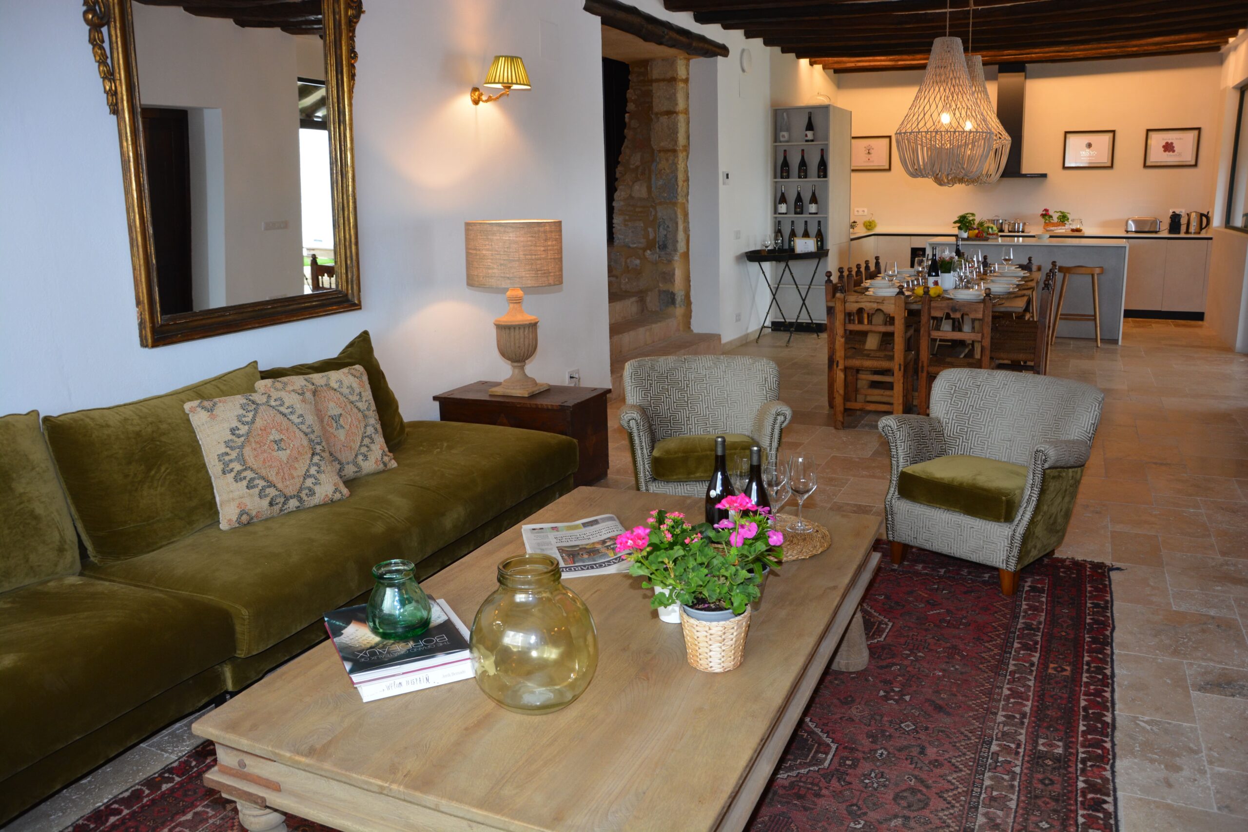 La Morera dispone de seis habitaciones dobles, cada una con su propio baño completo, y un aseo de cortesía adicional. Los amplios espacios comunes se reparten entre un acogedor comedor de invierno y un comedor de verano al aire libre, perfectos para disfrutar del entorno mediterráneo y las impresionantes vistas a los viñedos de Viladellops.