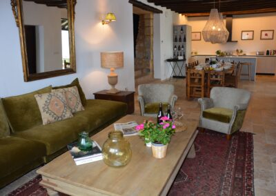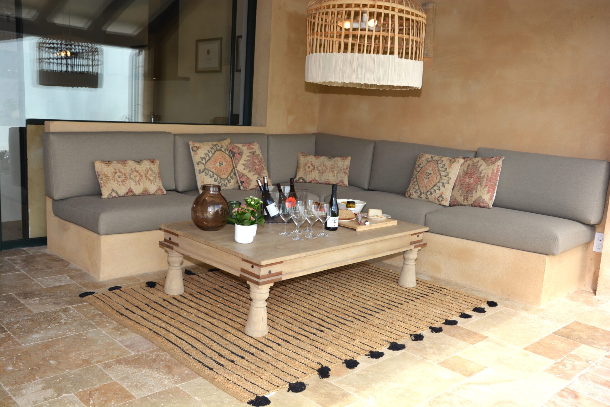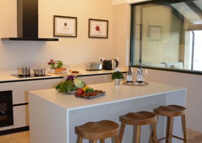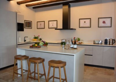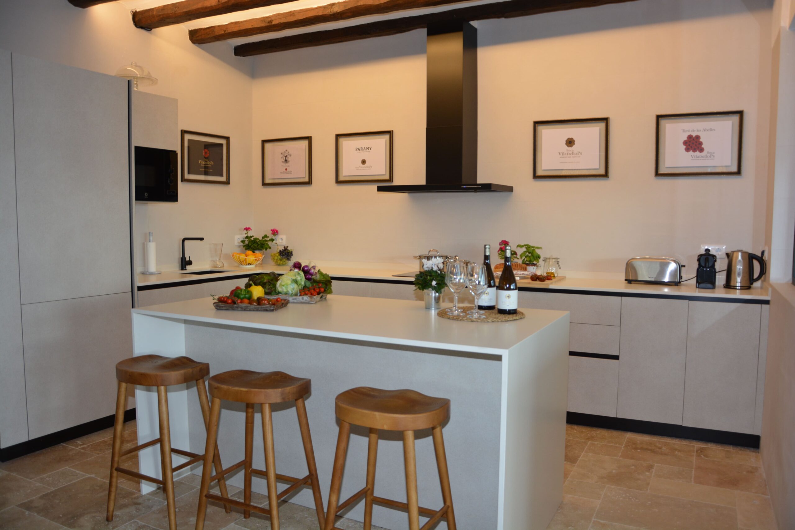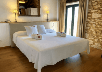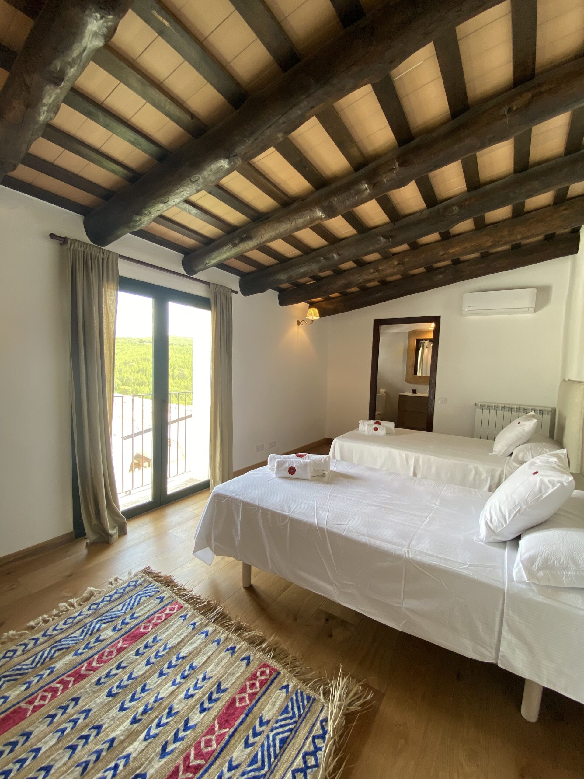 La Morera dispone de seis habitaciones dobles, cada una con su propio baño completo, y un aseo de cortesía adicional. Los amplios espacios comunes se reparten entre un acogedor comedor de invierno y un comedor de verano al aire libre, perfectos para disfrutar del entorno mediterráneo y las impresionantes vistas a los viñedos de Viladellops.